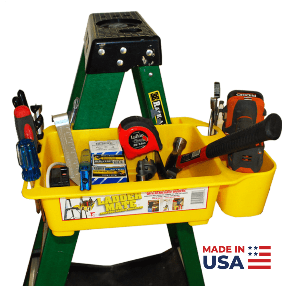 - FUNCTIONAL – The most versatile ladder caddy on the market. Whether it’s hand tools, paint cans, fasteners, fittings, or construction materials, Ladder Mate was designed for it all. More than just a plain bucket that clips to your step ladder, Ladder Mate is full of handy features.