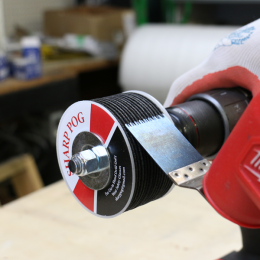 We are excited to introduce a new patent pending product, the Sharp Pog. This tool allows for you to quickly and effectively sharpen multi-tool blades using only your battery drill. Stop throwing out dull multi-tool blades, keep them sharp with the Sharp Pog!